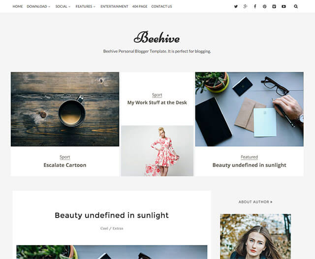 Description: Beehive Personal Blogger Templates is a unique personal gratis blogger template, focused on minimalism, elegance too lots of features. This pattern features Multi Author Posts, Unique Slider at the top, Smart Sticky Menu which automatically hides itself spell you lot scroll downward too shows itself when you lot scroll up.